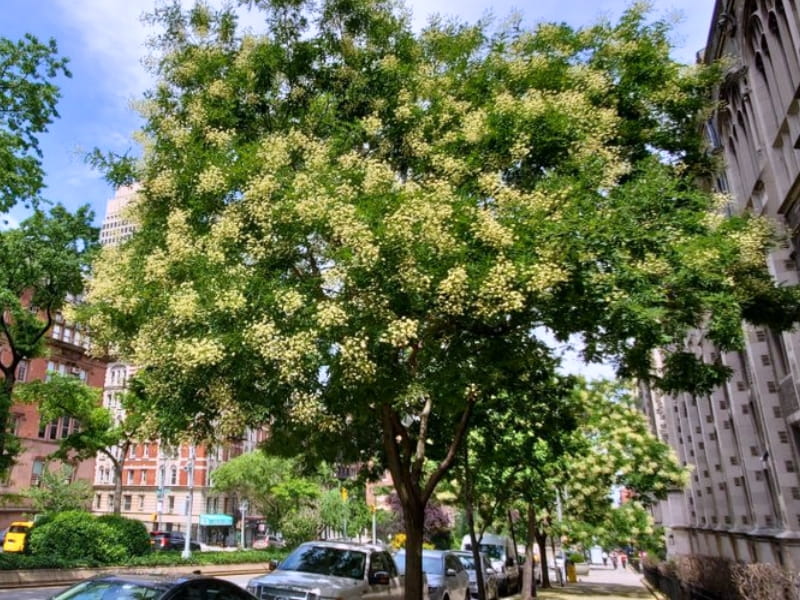 A: The Japanese Pagoda Tree typically blooms in late summer (July-August), providing a valuable source of nectar for pollinators when few other trees are in bloom.